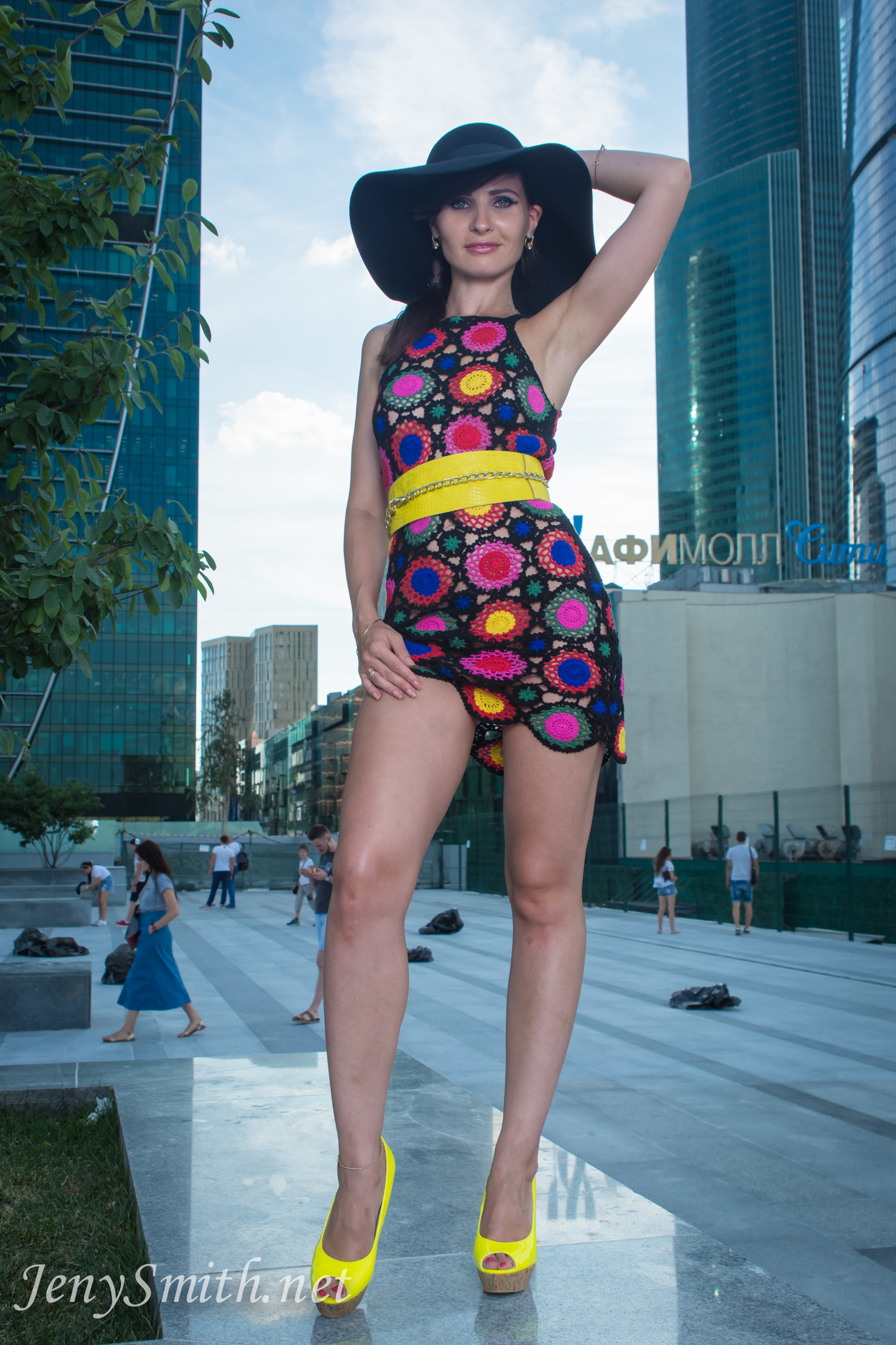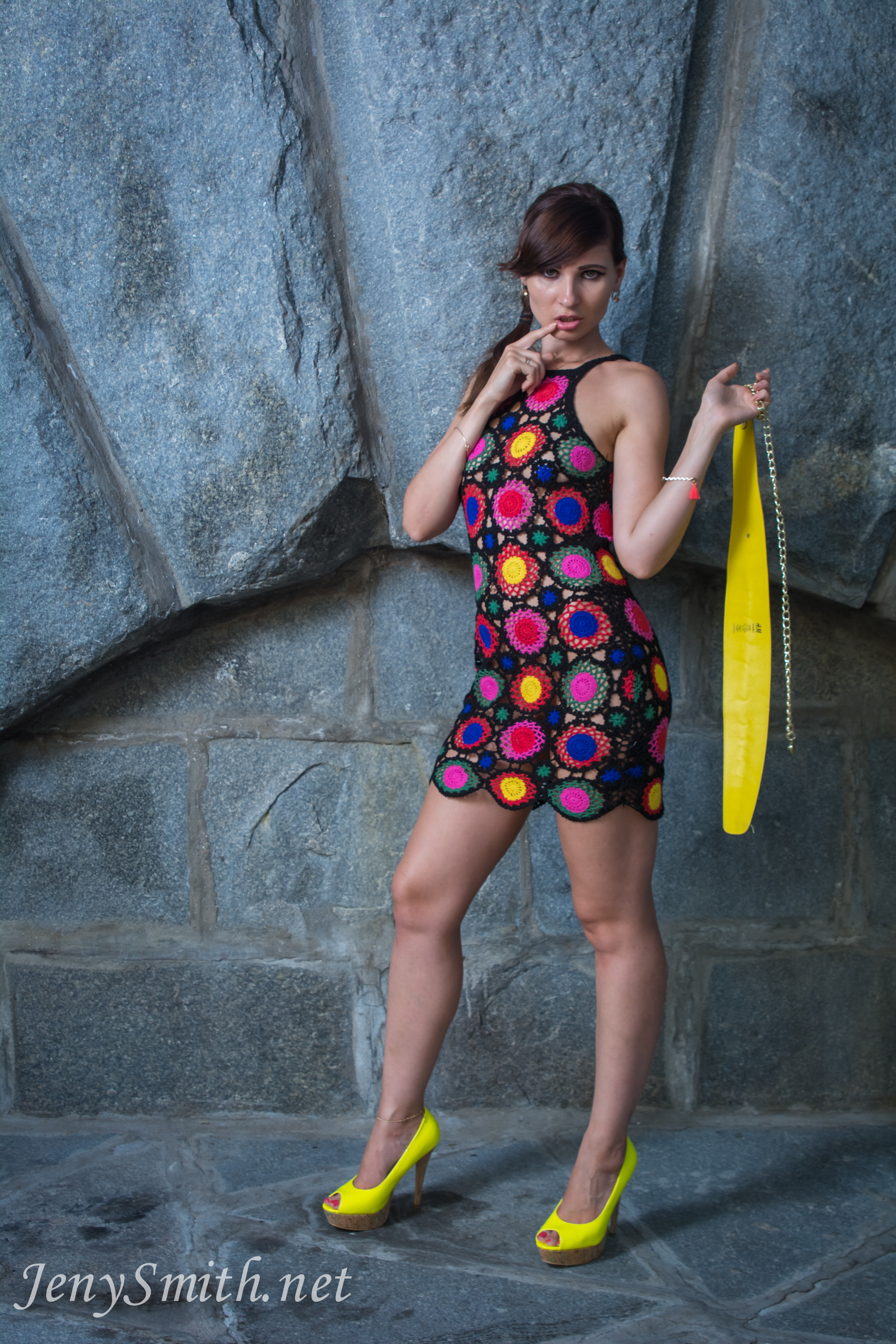 Jeny Smith with yellow heels